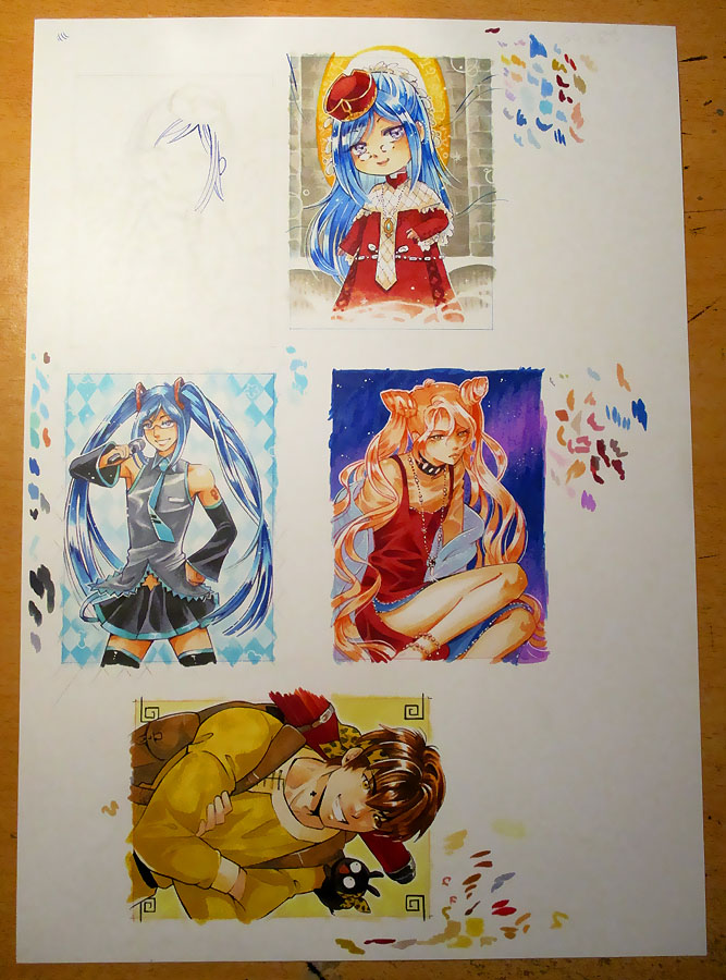 Et puis forte de ma réussite, je me suis sentie pousser des ailes et une sorte de spirale infernale s’est mise en route… =o= Y’avait encore de la place sur la feuille…