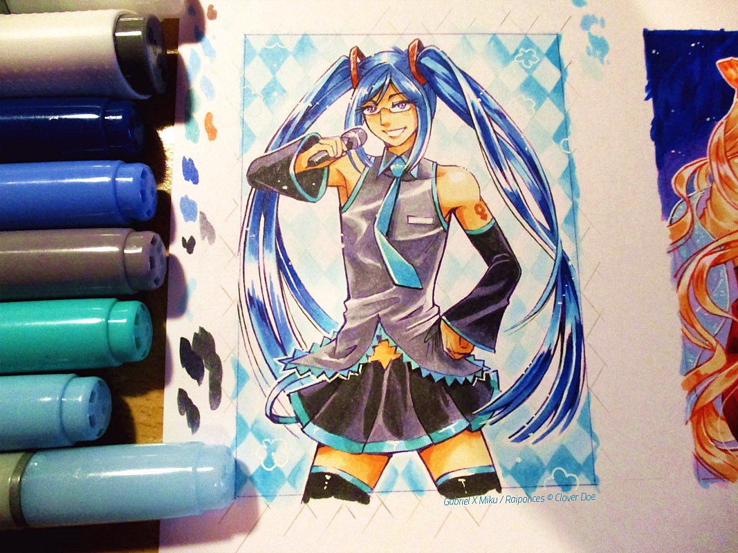 Du coup j’ai refait un chibi à côté, j’ai sorti mes fidèles Sakura Pigma Micron qui EUX ne bavent PAS et YOLO !! Woé quoi, c’était un petit Cardi Gaby, je ne pouvais décemment pas rester sur un échec ! °^°