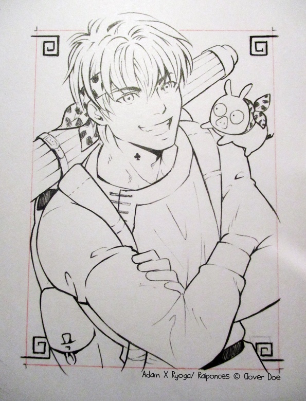 Papier bristol, résultat sans appel : l’encre se diffuse. Je dois faire des traits super rapides, d’un jet pour éviter que l’encre n’imprègne trop le papier et bave. Aucune explication vu que d’autres avec le même matos n’ont pas ce résultat. Je suis le seum intégral. =u=