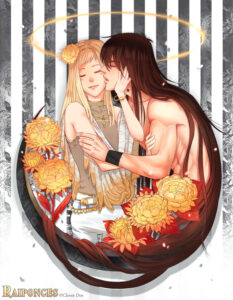 Posted inDessin Galerie – Raiponces Posted by By Clover Doe 27 septembre 2025No Comments Voir la fiche de présentation du manga Raiponces ( Fantasy, BL) Artworks Divers Gifts & Commsihes
