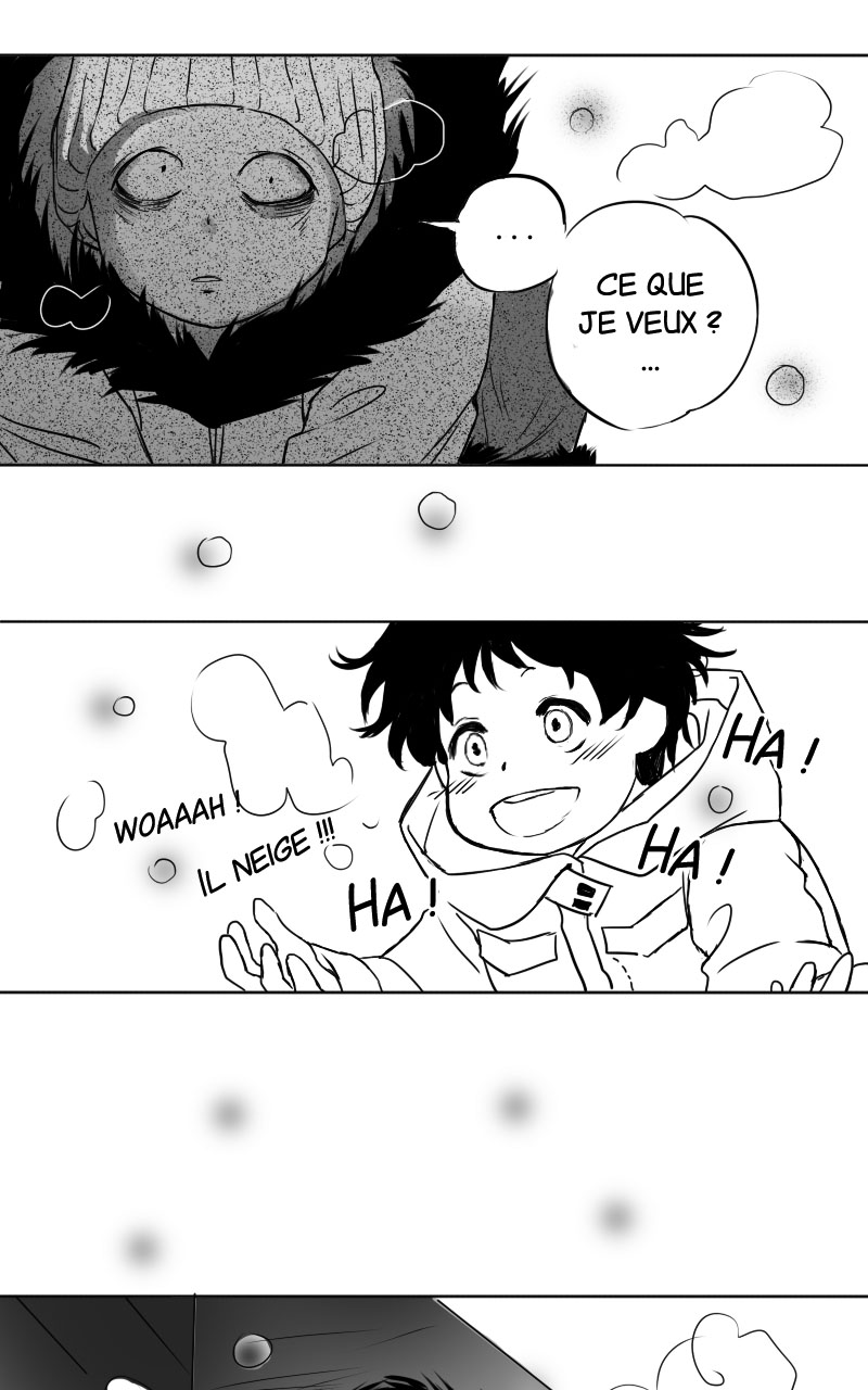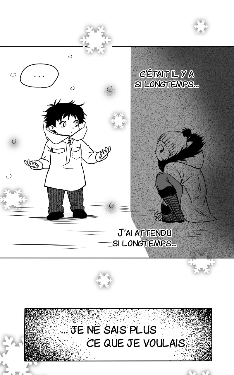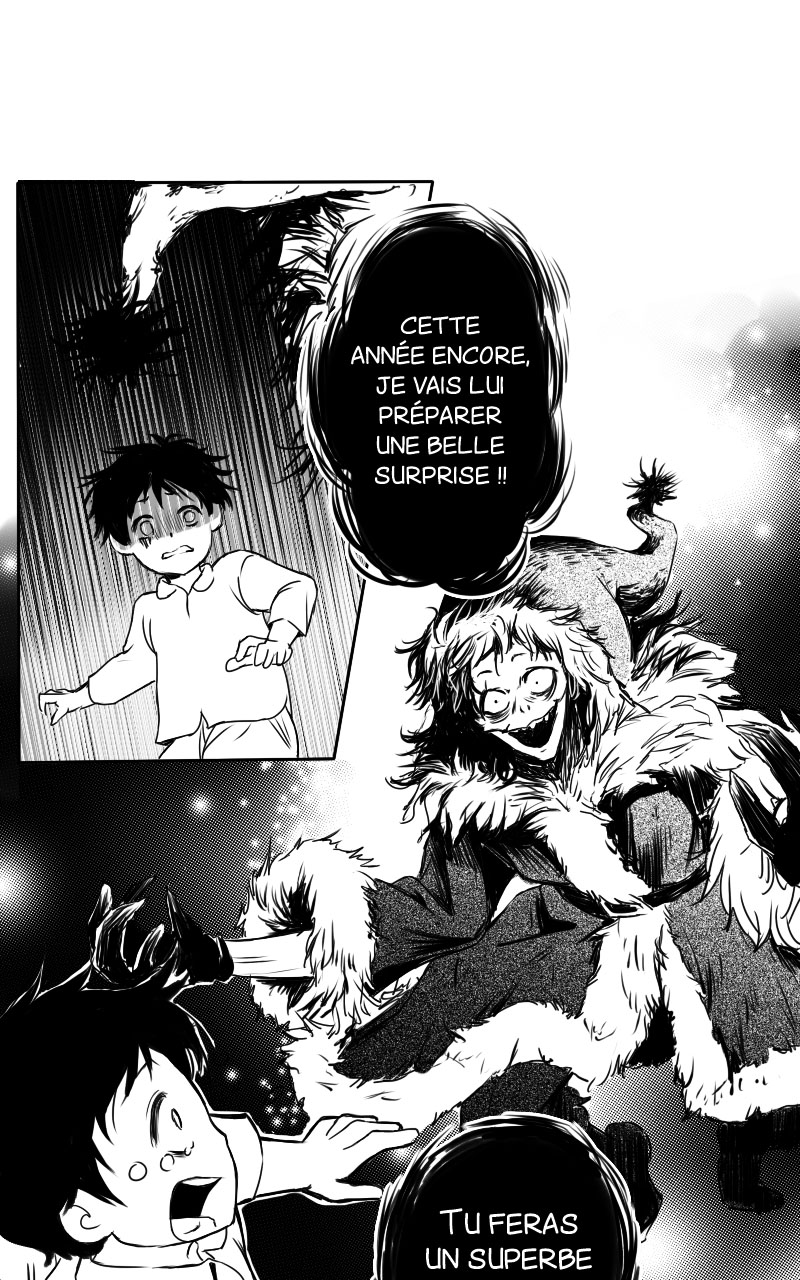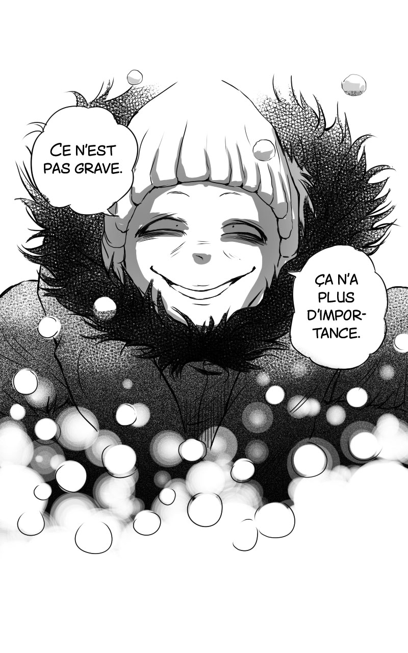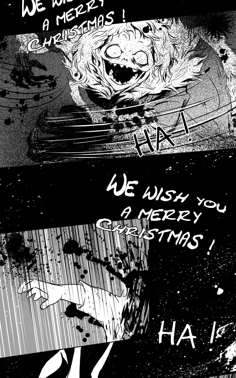 Après, je me suis rappelée que Jorgie est un petit enfant, encore très naïf, il n’avait pas encore l’expérience pour se méfier ni le caractère pour voir le Mal. Cette gentillesse et cette confiance sont trahies par une créature folle, c’est le monstre qu’il faut blâmer. >_< Les méchons !!! TAT Merci d'avoir lu et pour on retour ! Ça me fait plaisir ! 😀 Joyeuses fêtes ! xDDDD