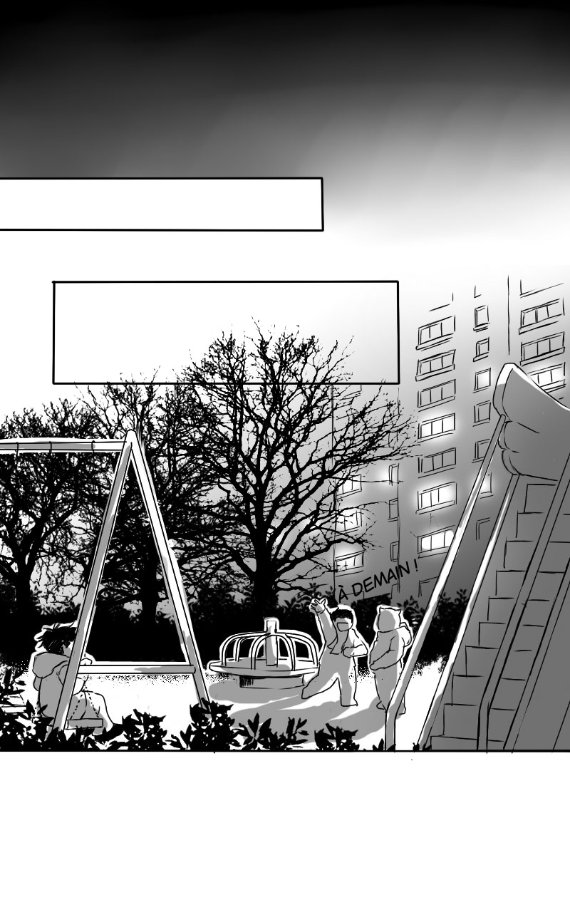 J’aime bien le résultat de ce format de lecture (lu sur téléphone portable en plus) ; j’ai trouvé la narration très fluide, avec parfois des notion de « fin de page » (damn, je ne sais pas comment l’exprimer mieux) mais aussi un scroll très naturel dans le déroulé !